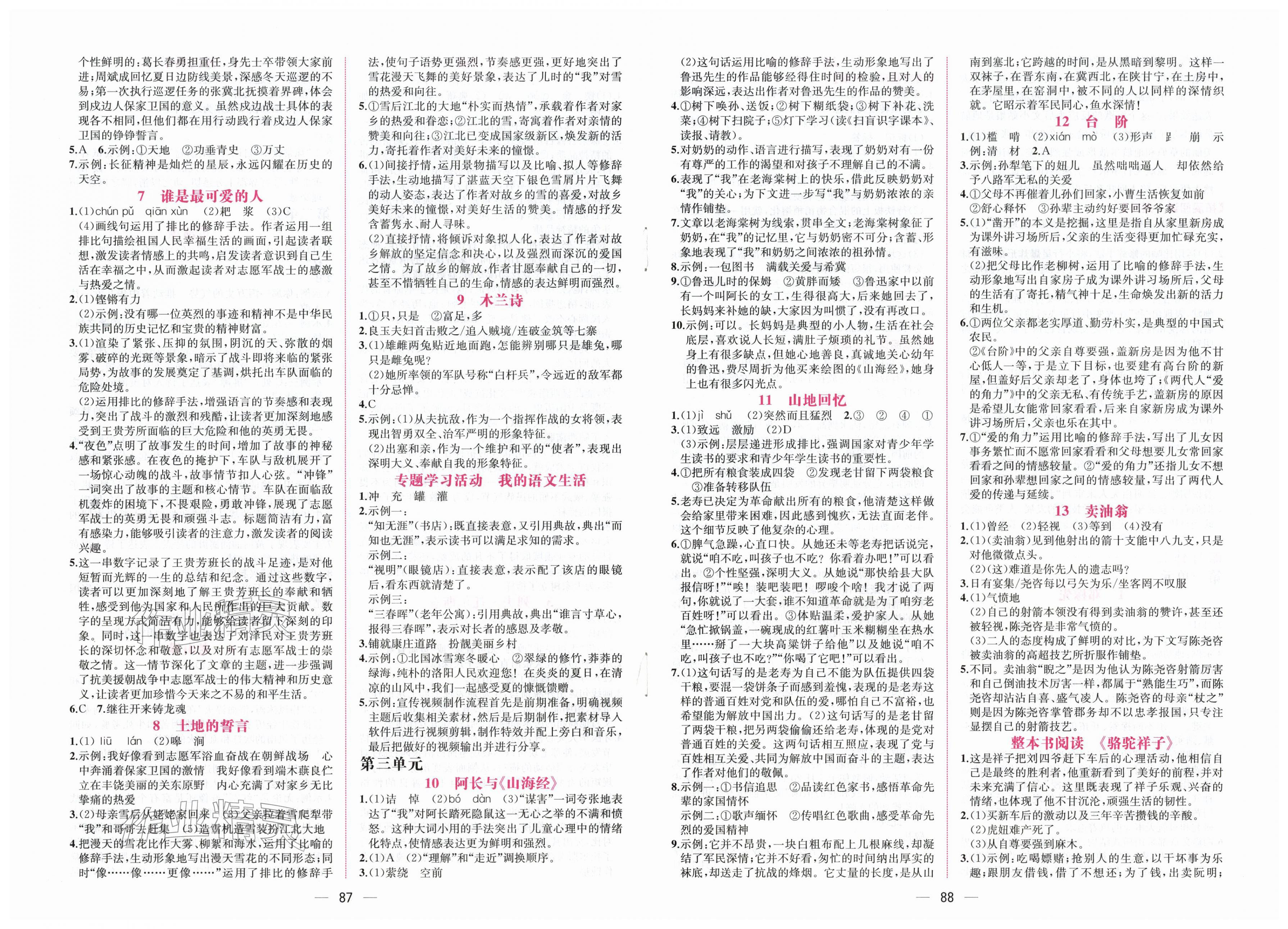 2026年课时练人民教育出版社七年级语文下册人教版第8页