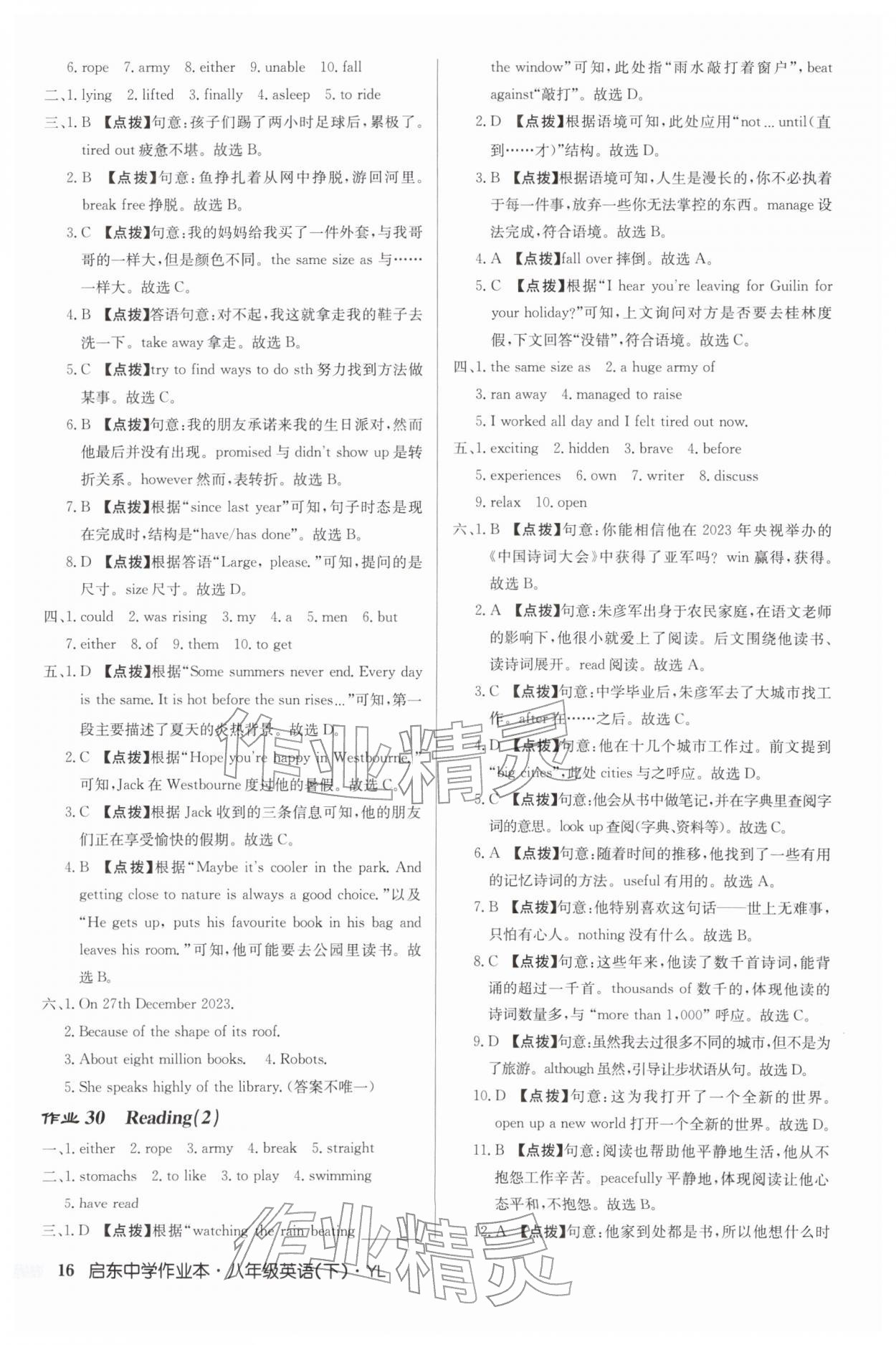 2026年启东中学作业本八年级英语下册译林版第16页