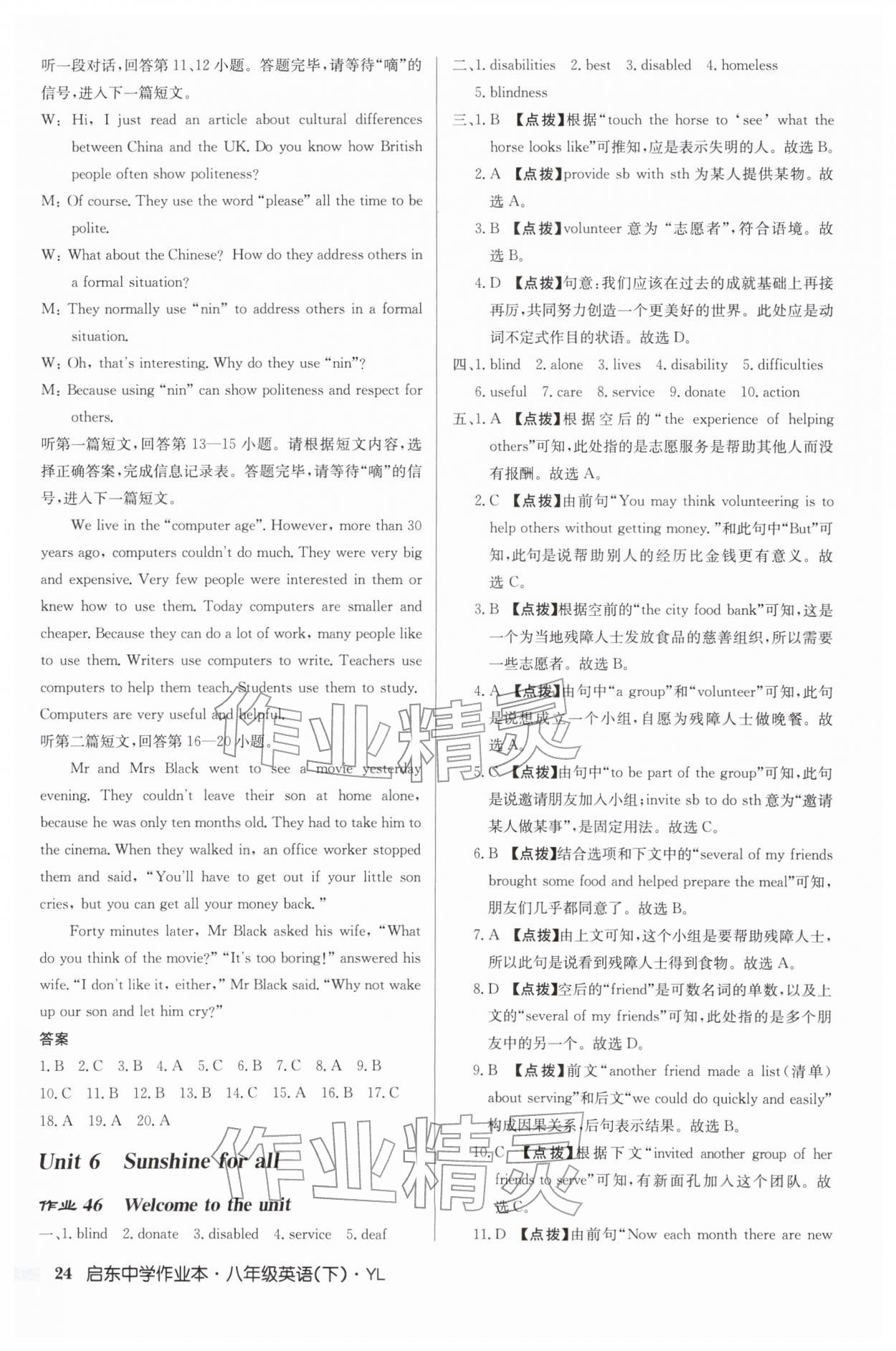 2026年启东中学作业本八年级英语下册译林版第24页