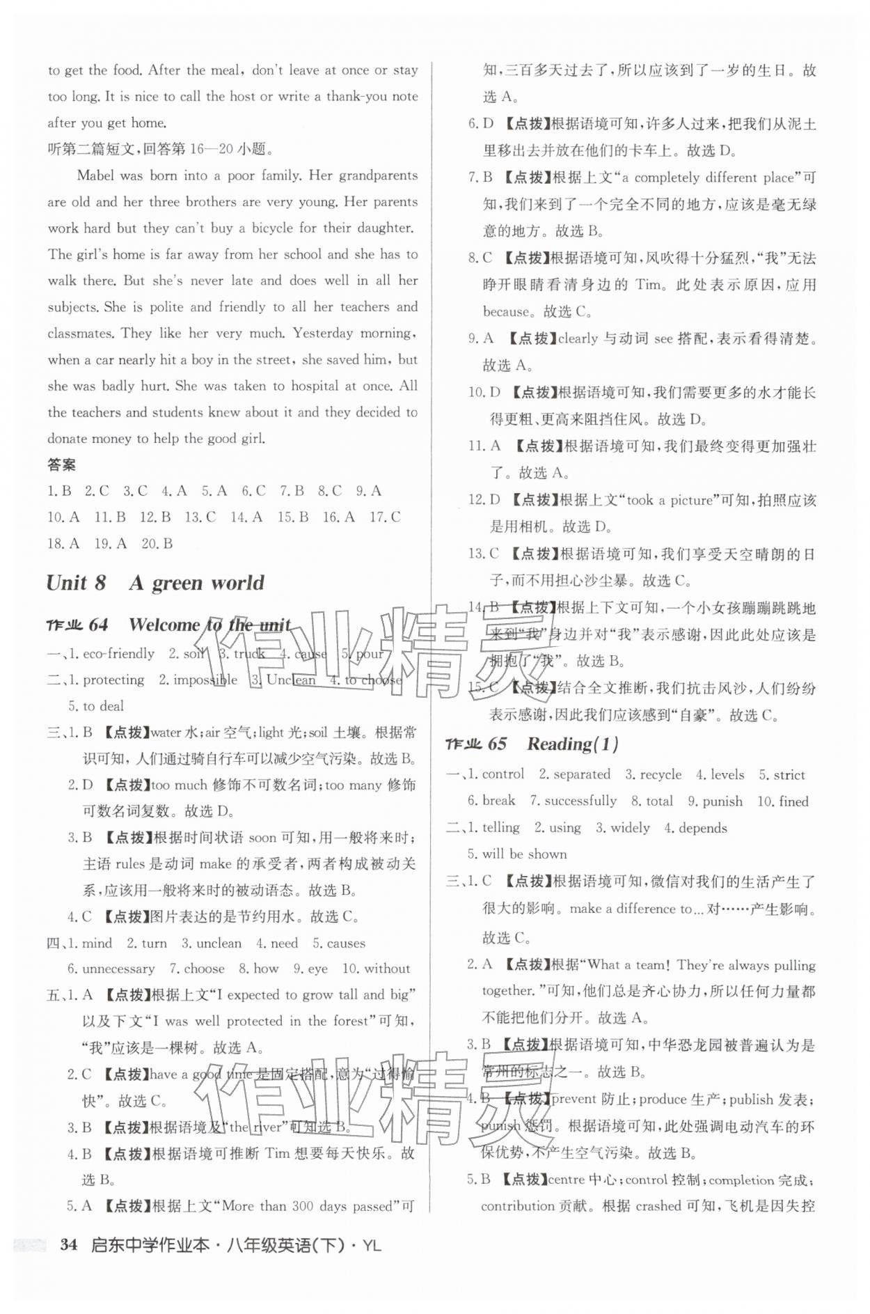 2026年启东中学作业本八年级英语下册译林版第34页