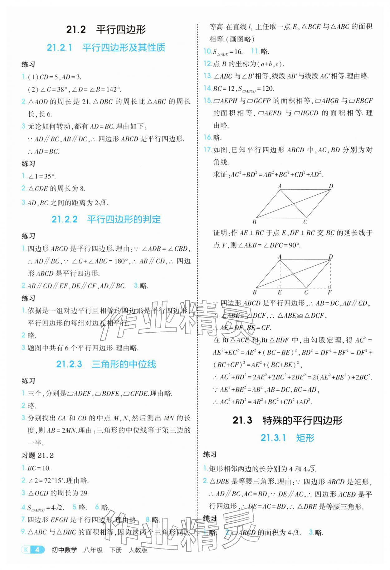 2026年教材课本八年级数学下册人教版参考答案第4页