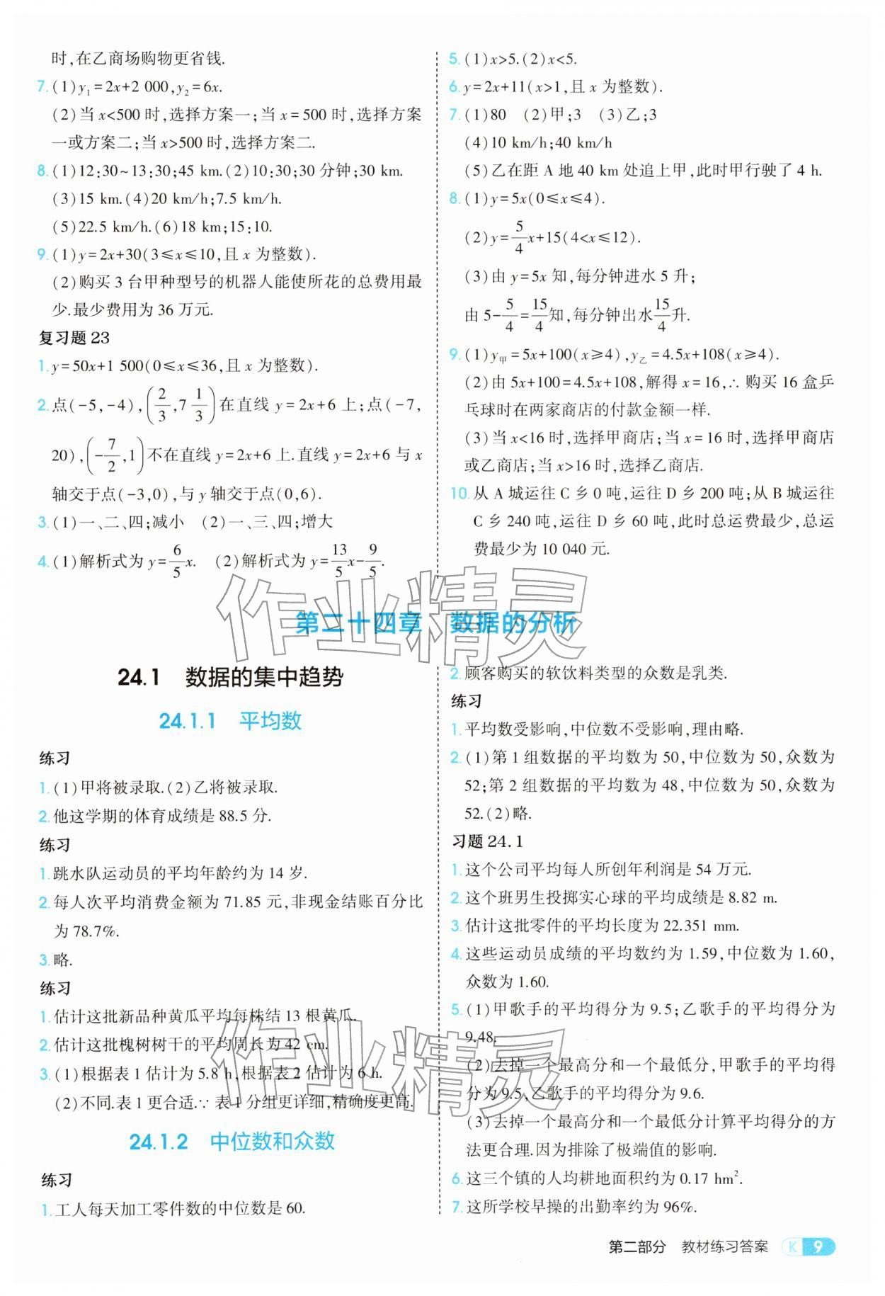 2026年教材课本八年级数学下册人教版参考答案第9页