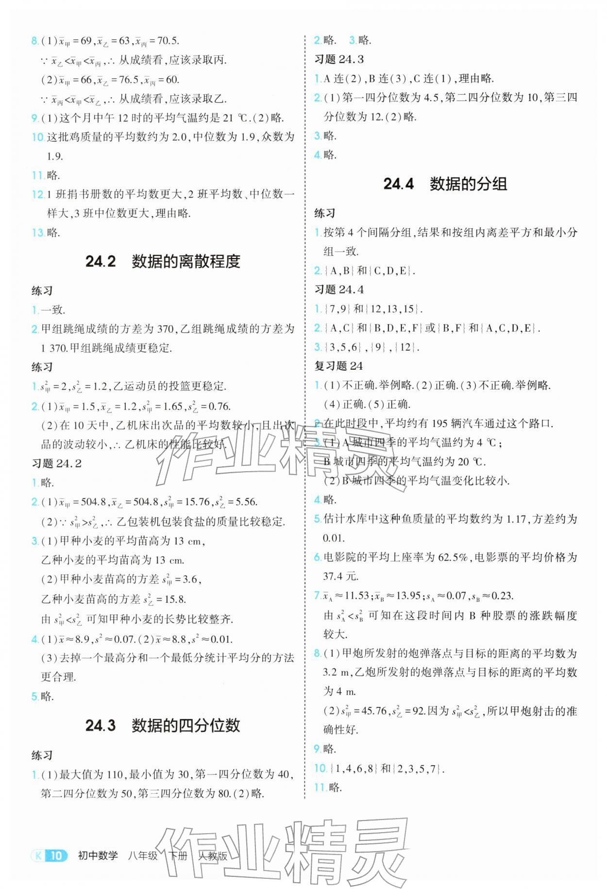 2026年教材课本八年级数学下册人教版参考答案第10页