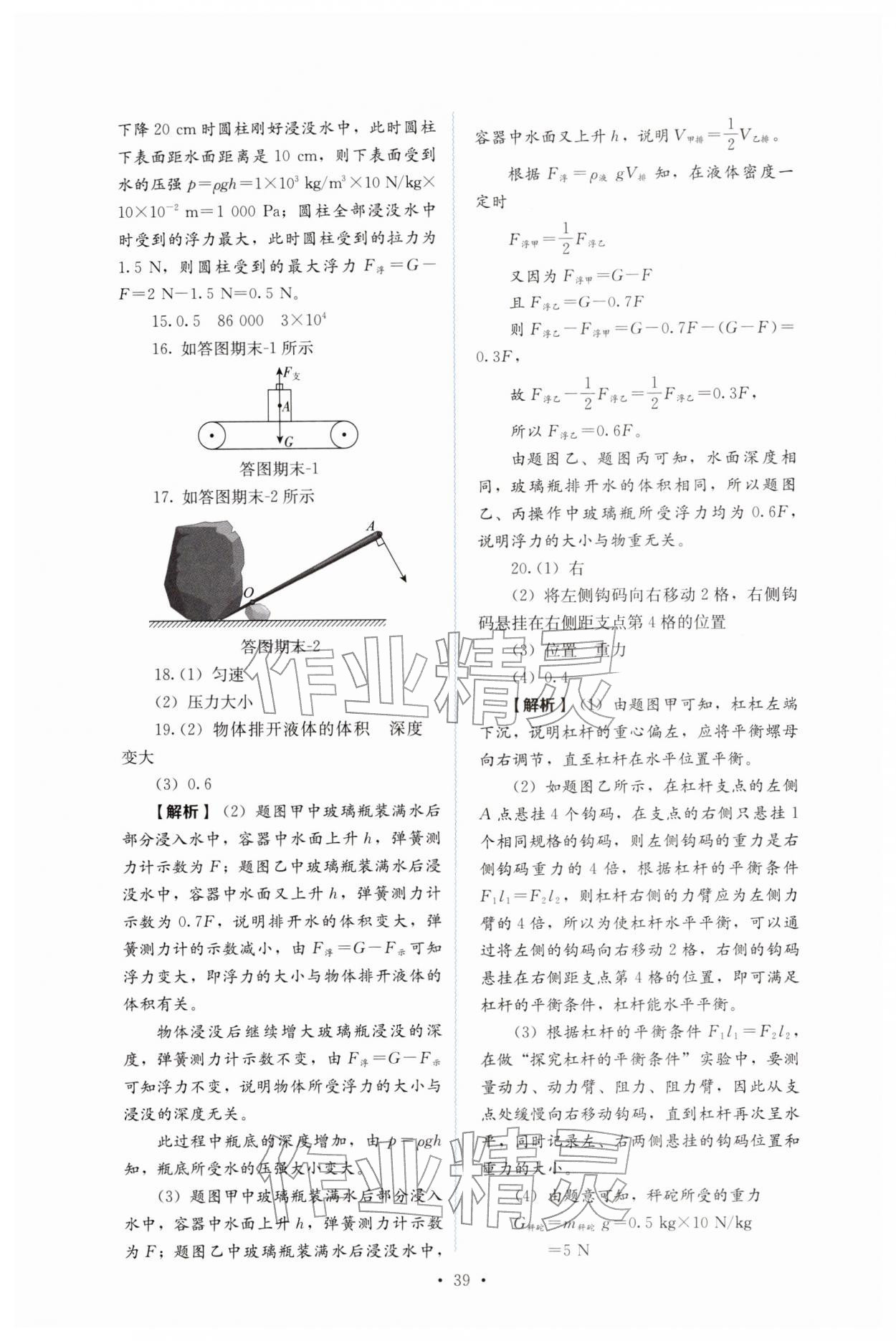 2026年人教金学典同步解析与测评八年级物理下册人教版第39页