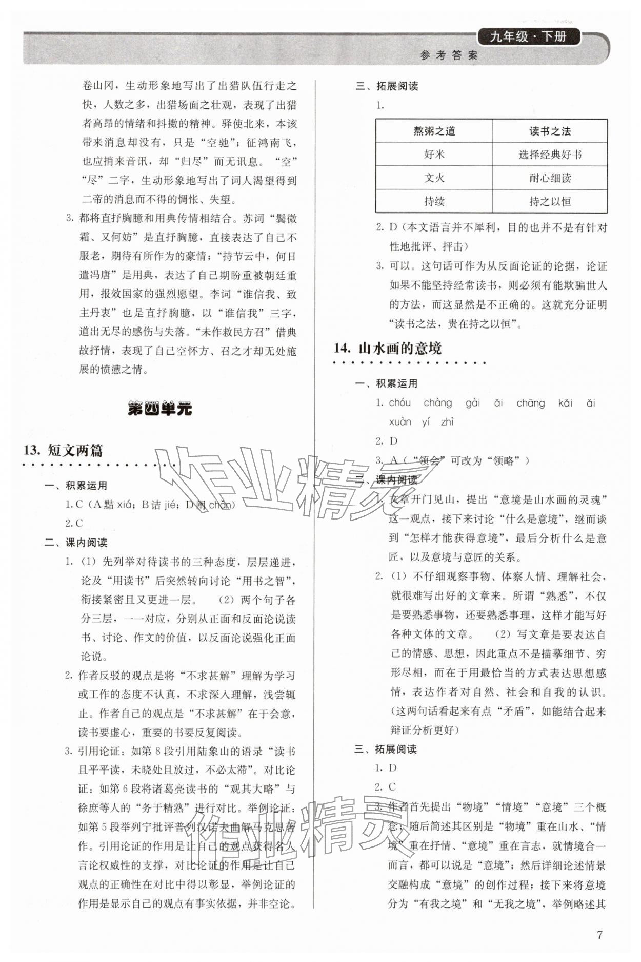 2026年补充习题九年级语文下册人教版人民教育出版社第7页
