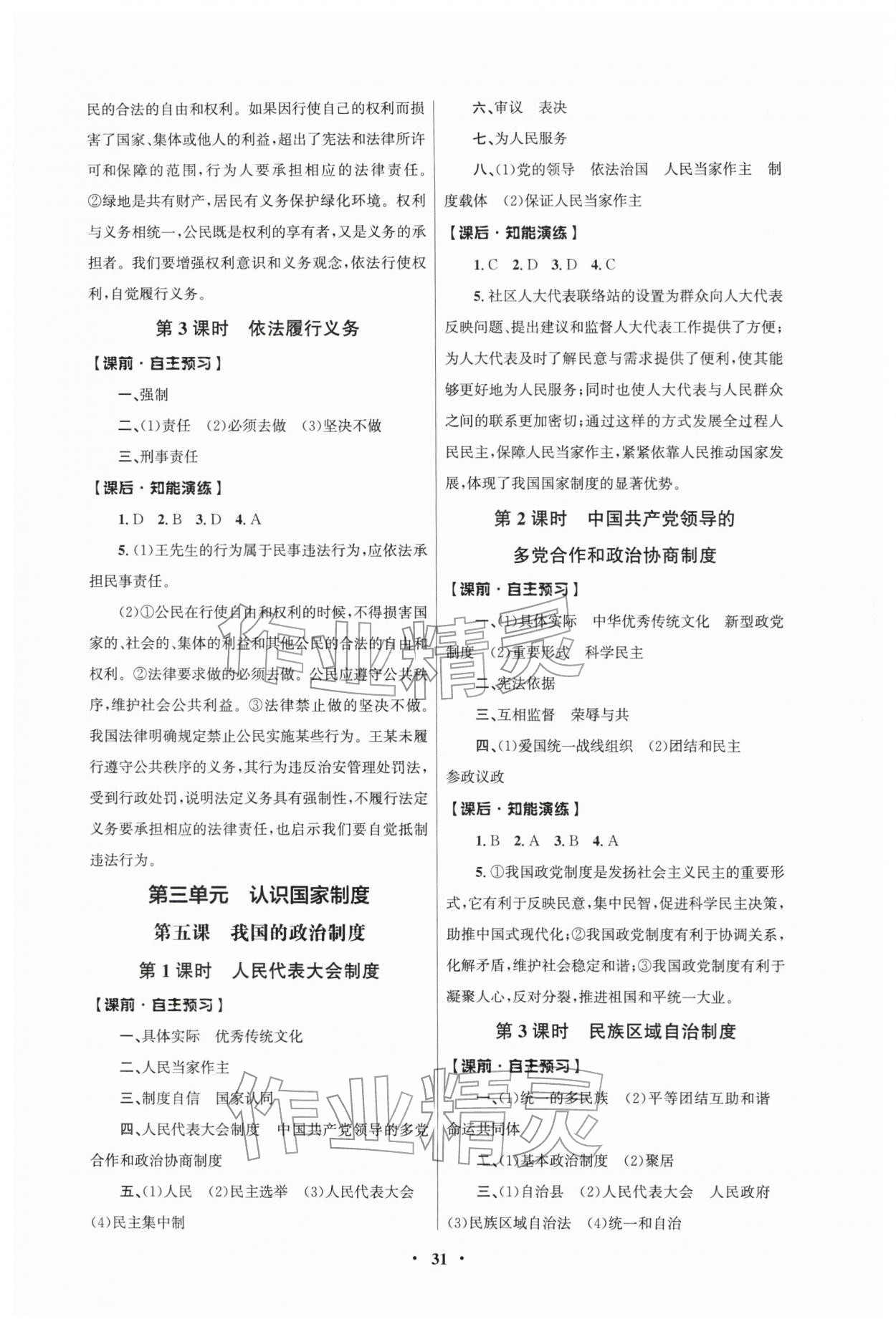 2026年同步练习册人民教育出版社八年级道德与法治下册人教版江苏专版第3页