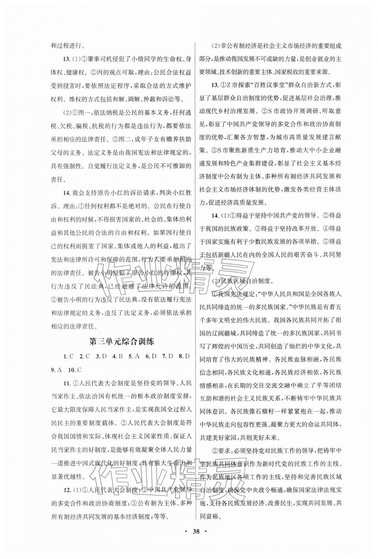 2026年同步练习册人民教育出版社八年级道德与法治下册人教版江苏专版第10页