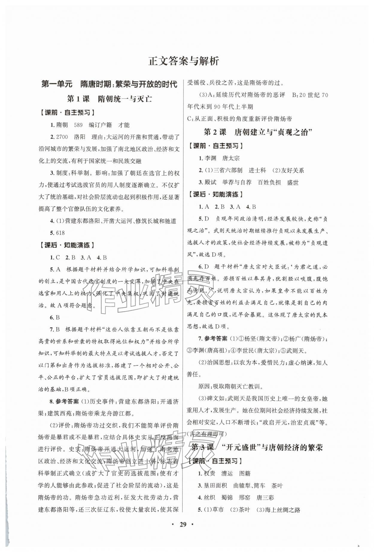 2026年同步练习册人民教育出版社七年级历史下册人教版江苏专版第1页