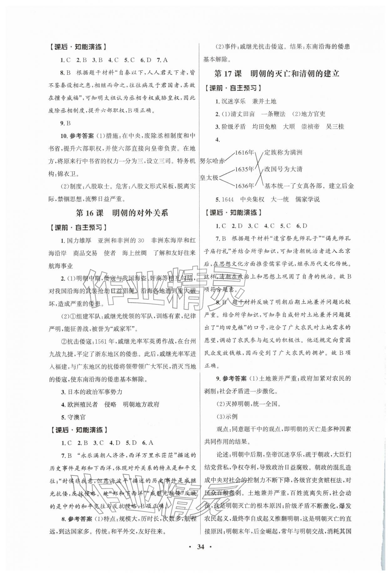 2026年同步练习册人民教育出版社七年级历史下册人教版江苏专版第6页