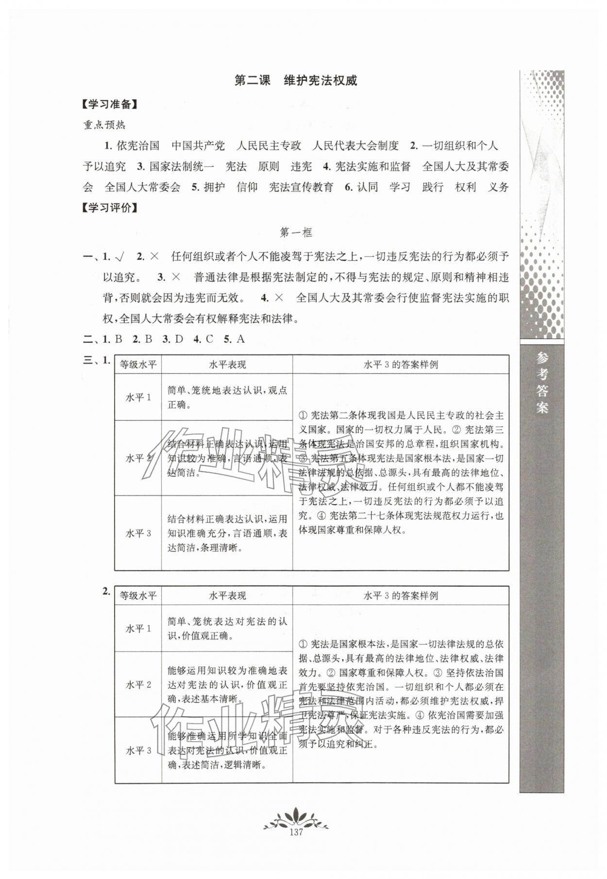 2026年新课程自主学习与测评八年级道德与法治下册人教版参考答案第3页