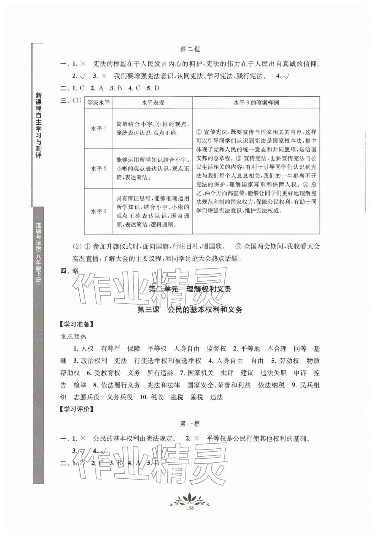 2026年新课程自主学习与测评八年级道德与法治下册人教版参考答案第4页