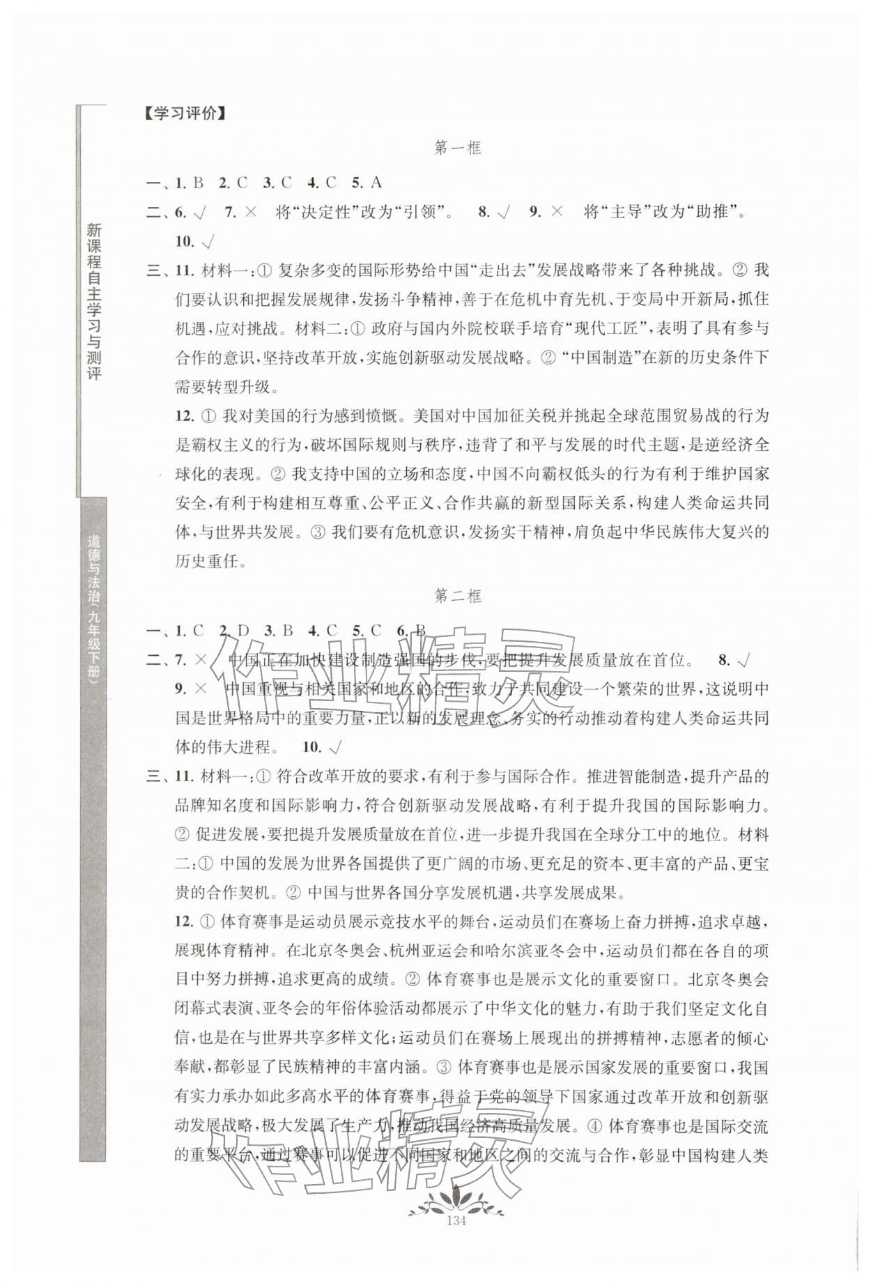2026年新课程自主学习与测评九年级道德与法治下册人教版第6页