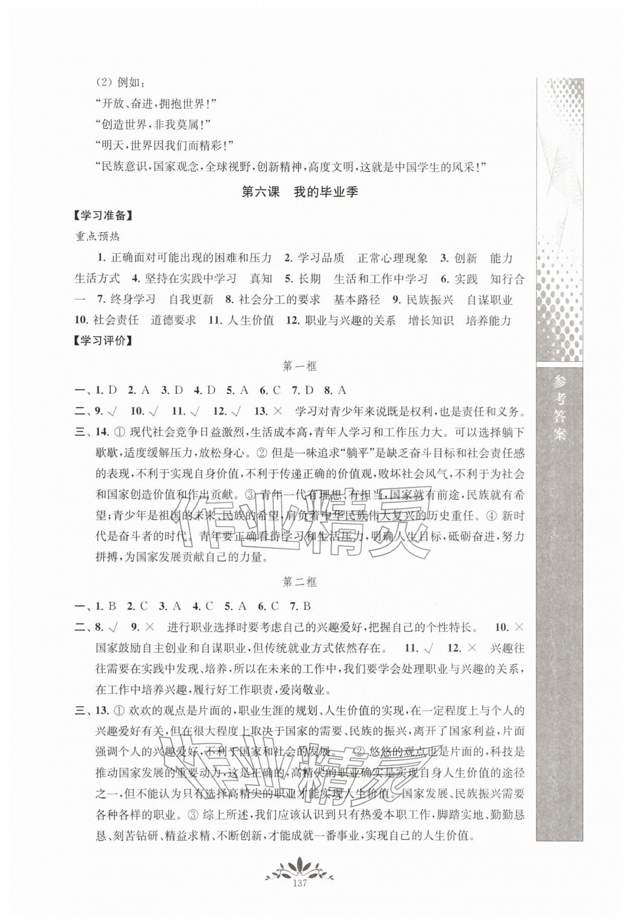 2026年新课程自主学习与测评九年级道德与法治下册人教版第9页