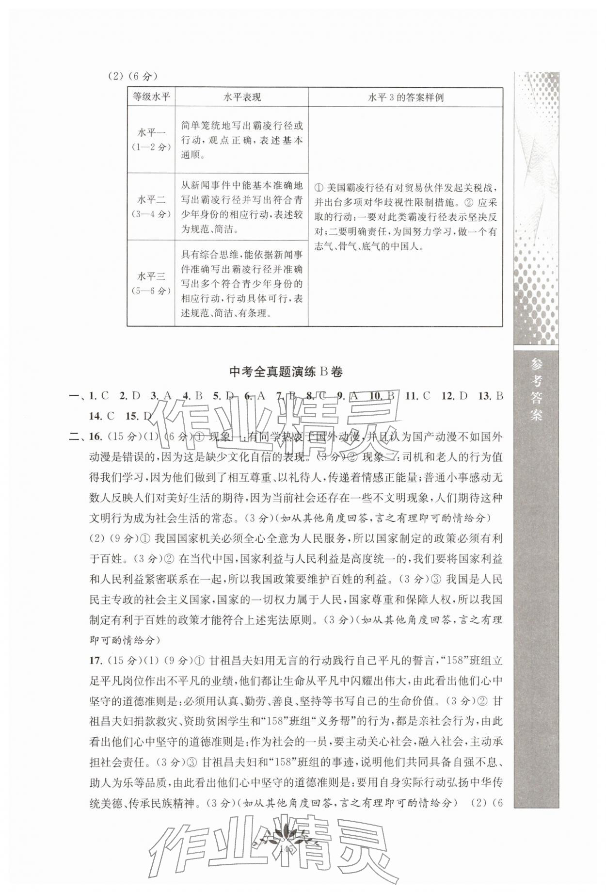 2026年新课程自主学习与测评九年级道德与法治下册人教版第17页