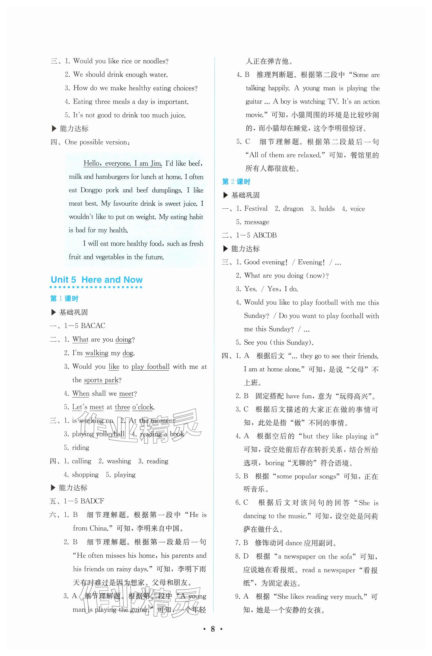 2026年人教金学典同步解析与测评七年级英语下册人教版参考答案第8页