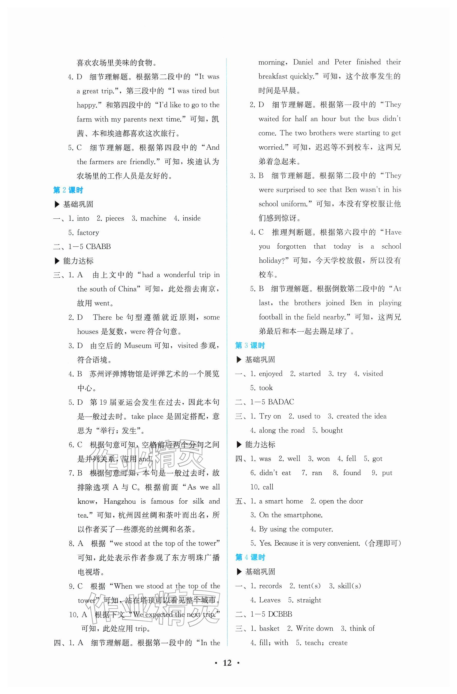 2026年人教金学典同步解析与测评七年级英语下册人教版参考答案第12页