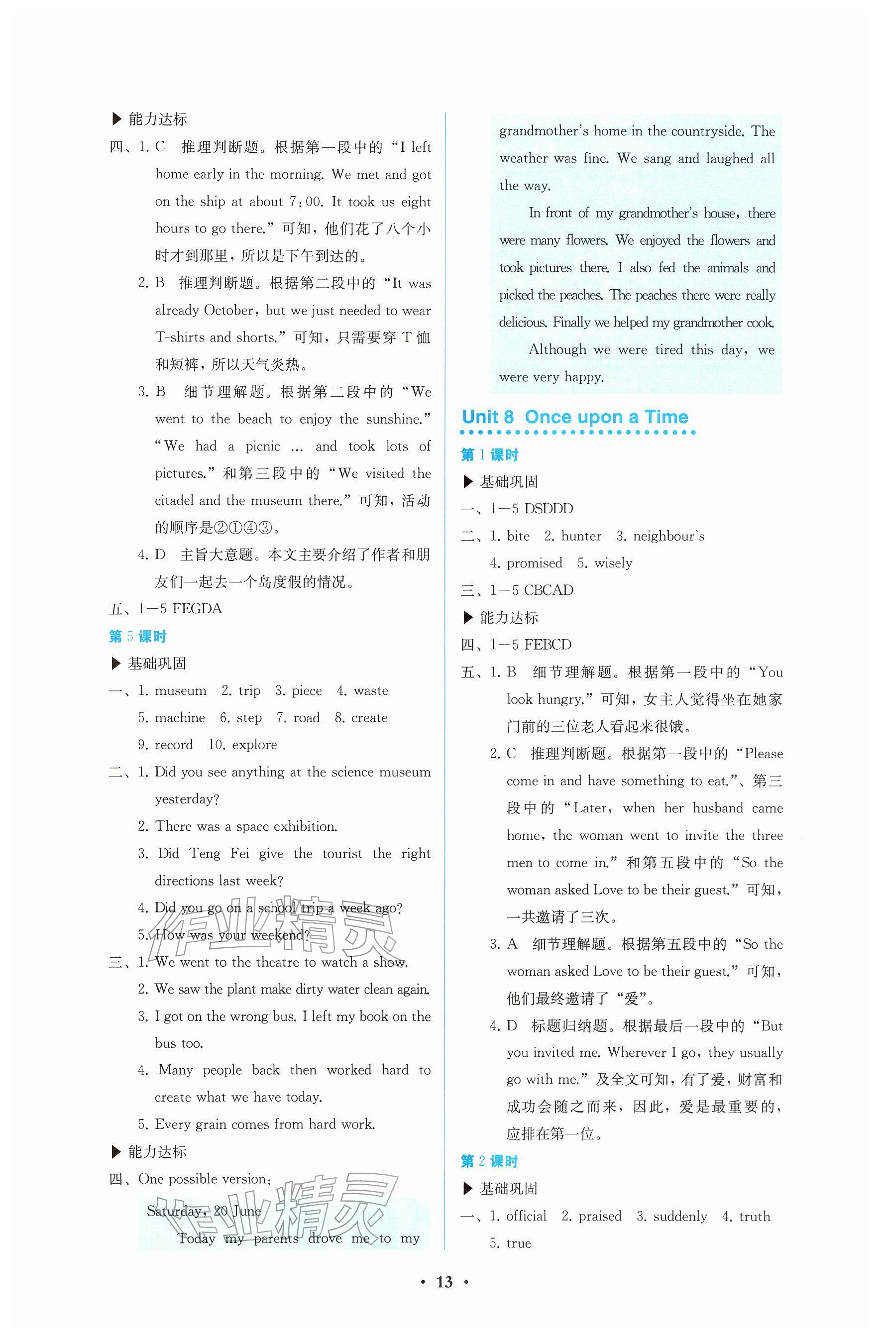 2026年人教金学典同步解析与测评七年级英语下册人教版参考答案第13页