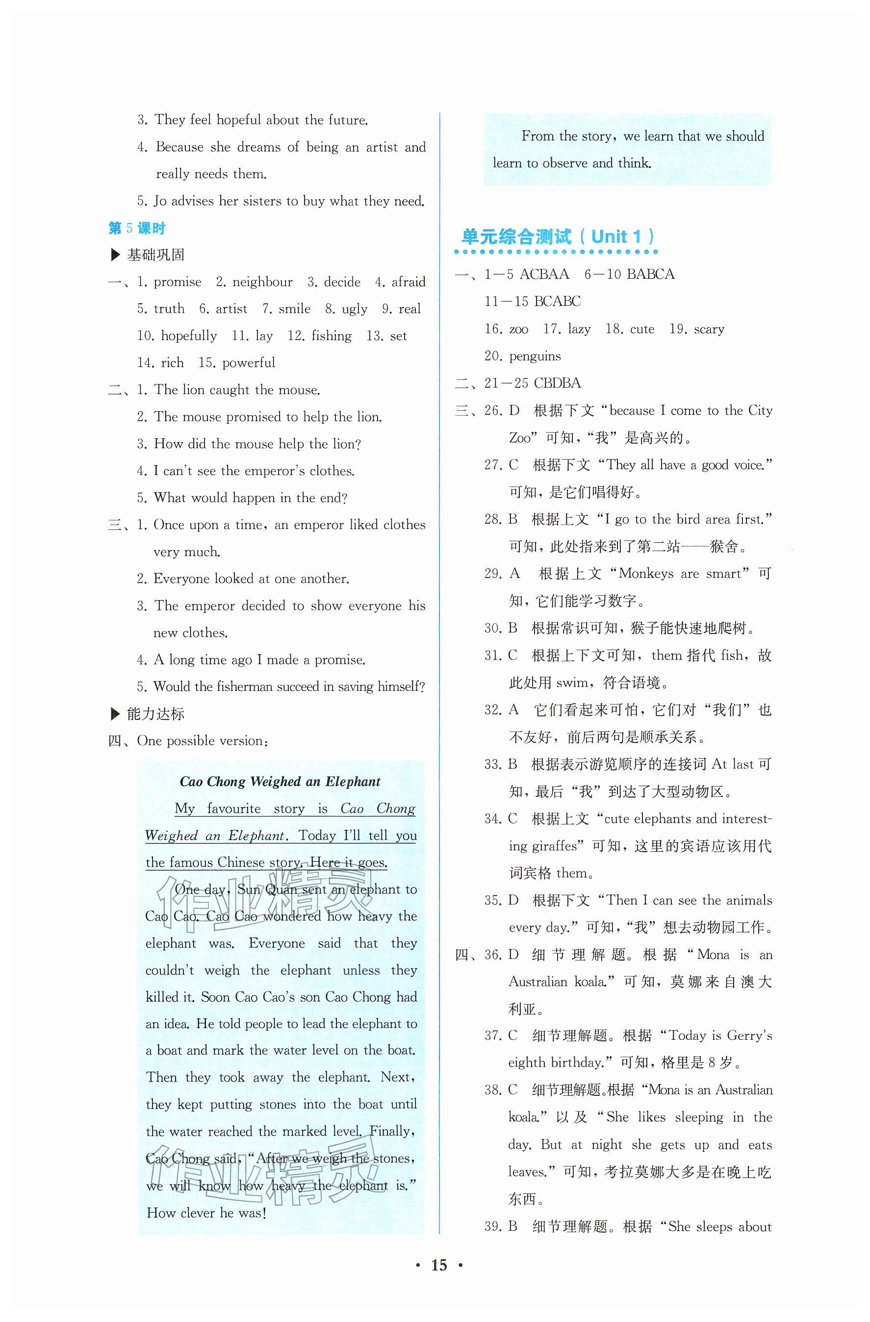 2026年人教金学典同步解析与测评七年级英语下册人教版参考答案第15页
