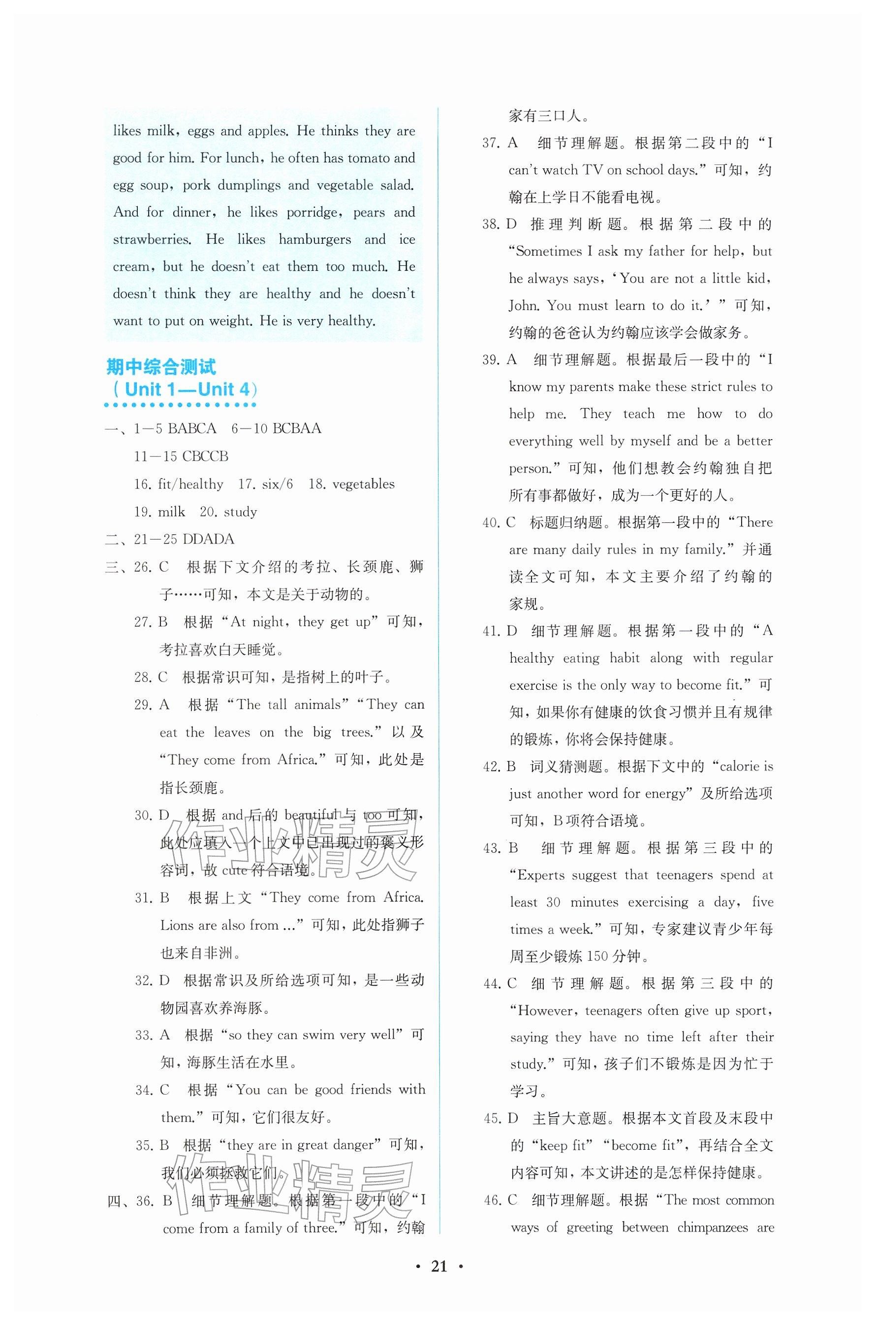2026年人教金学典同步解析与测评七年级英语下册人教版参考答案第21页