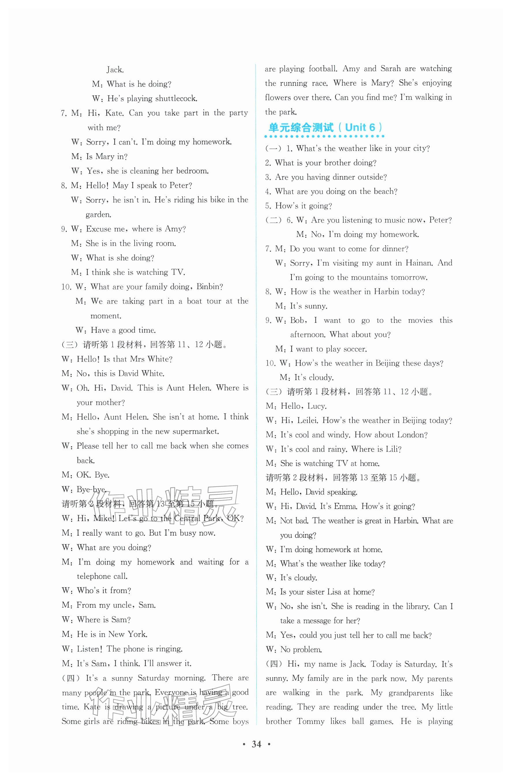 2026年人教金学典同步解析与测评七年级英语下册人教版参考答案第34页