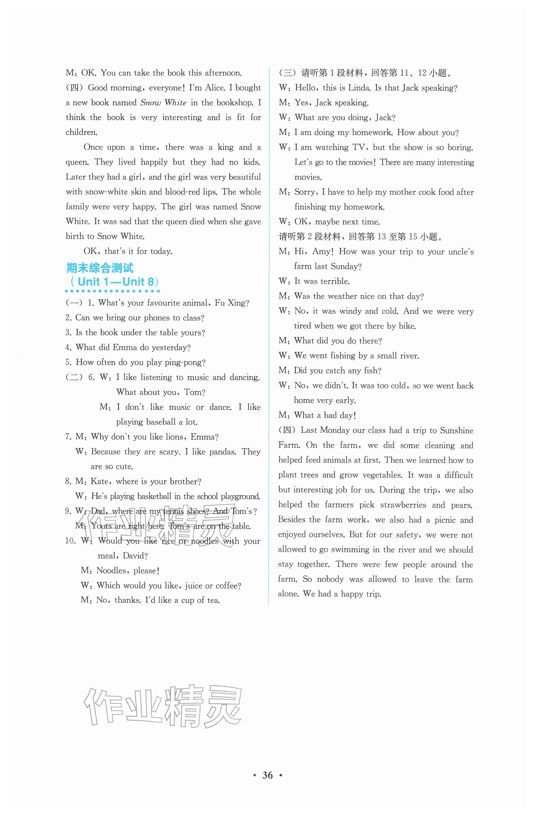 2026年人教金学典同步解析与测评七年级英语下册人教版参考答案第36页