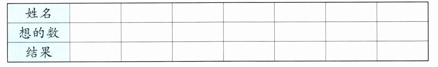 我的调查 统计自己及身边的同学想的数是几,结果又是几。完成下表。