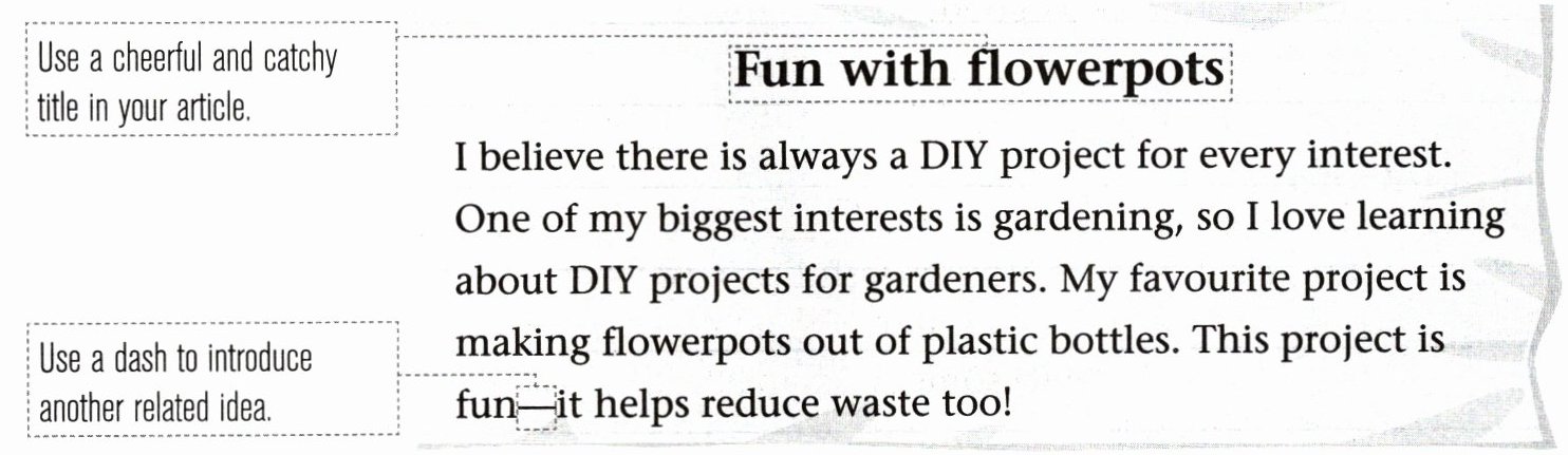 A Amy is writing about how to make flowerpots. Read her article and learn how to write about a DIY project.