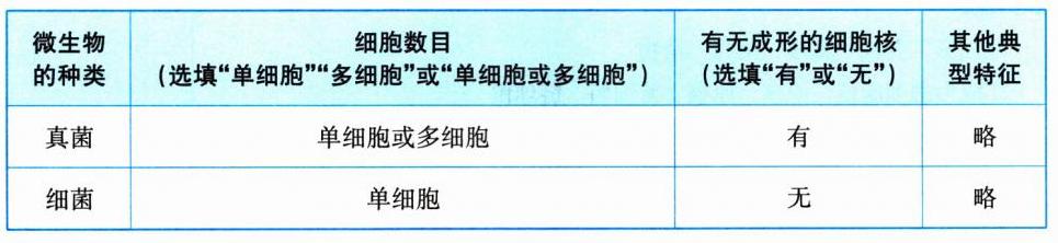 2. 请根据真菌和细菌的特点填写下表。