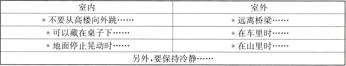 自然灾害时有发生,而且总是发生得很突然,很难预警。请你以“地震”为主题,根据以下提示写一篇报告,给同学们提供一些地震逃生的建议。