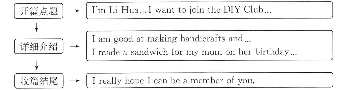 (2025·江苏淮安初二集团期中)假如你是八年级(1)班的李华,你想加入你们学校的DIY俱乐部。你需要给俱乐部负责人李老师用英文写一封申请信,内容必须包含以下要点。