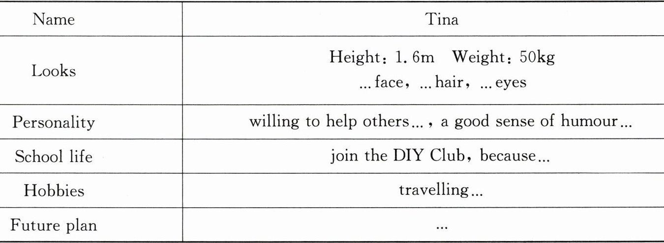假如你参加了学校举办的英语演讲大赛,你演讲的主题是“My Best Friend Tina”。下表已列出她的一些具体情况,请据此写一篇演讲稿。