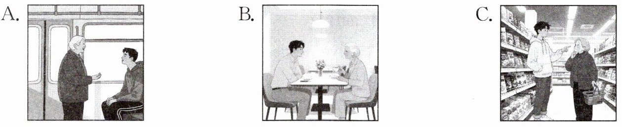 本部分共有10道小题,每小题你将听到一段对话,每段对话听两遍。在听每段对话前,你将有5秒钟的时间阅读题目;听完后,你还有5秒钟的时间选择你认为最合适的答案。在听到“嘀”的信号后,进入下一小题。