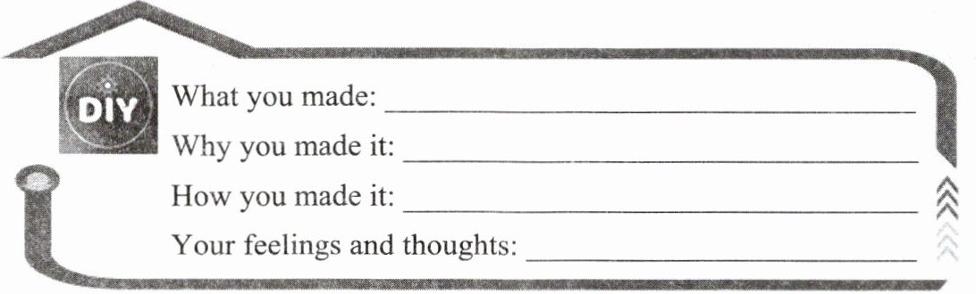 答案: As a fan of DIY,I have many DIY experiences. The most interesting one is making a paper lantern for the Lantern Festival.