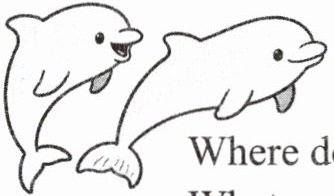 答案:Dolphins are our friends. They live in oceans around the world,often swimming and playing together in groups. They're beautiful and friendly. They are among the smartest animals on earth.
