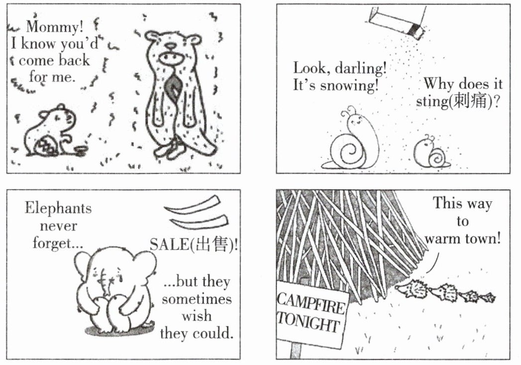 C. The elephant wants to forget his pain (疼痛). D. The hedgehogs (刺猬) will sleep well tonight.