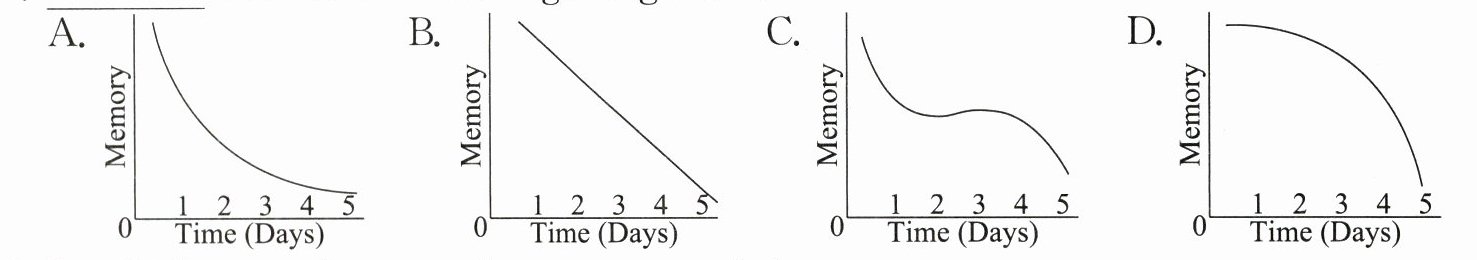 A3: Don’t worry. This is natural for many people. In 1885, Hermann Ebbinghaus showed us a famous forgetting curve (遗忘曲线). According to him, the quickest loss (丢失) of memory happens during the very early time after learning, and then it gradually (逐渐地) slows down. This means that going through (复习) what we have learned in time can help us to remember the information better.