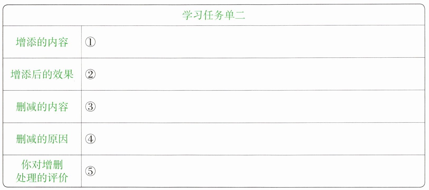 4. 课文是根据《风俗通》等古籍中的有关记述改写的。将课文与下面的文段对比,看看课文主要增添了哪些内容,又做了怎样的删减,完成学习任务单二。