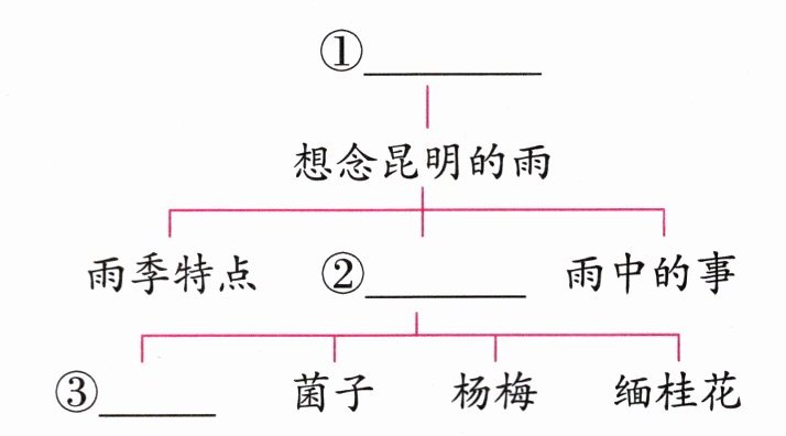 2. 四十年后,作者再忆昆明的雨,满满都是对昆明的雨的美好回忆。文中有多处能直接或间接体现昆明的雨的特点的句子,请根据提示完成表格