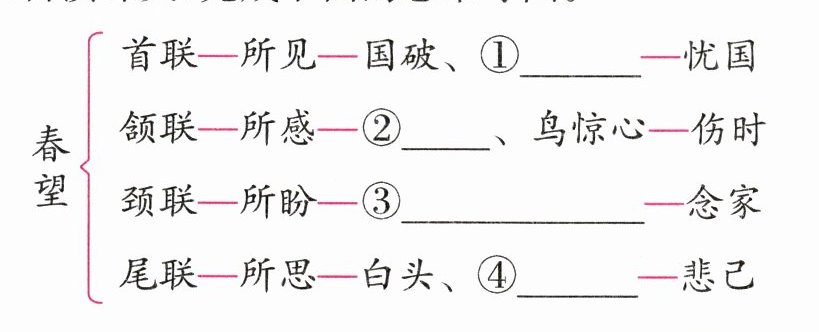 答案:①草木深 ②花溅泪 ③家书 ④不胜簪