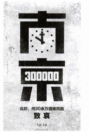 海报的主体是黑色粗体的“南京”二字,给人以庄严肃穆之感。“南”字内部变形为一个钟表,时间停留在10:00,这是警报拉响的时间,寓意为要铭记历史,警钟长鸣。“京”字中间是数字“300000”,代表30万在南京大屠杀中遇难的同胞。海报下方是“此刻,向30余万遇难同胞致哀”字样和时间“12-13”,显示了海报的主题和公祭日时间,寓意为缅怀死者,珍爱和平,勿忘国耻。
