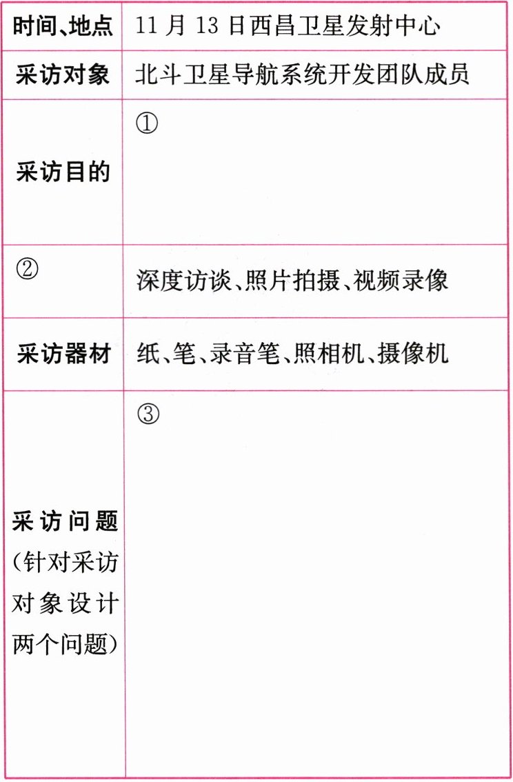 6. 假如你是学校特派记者,将对“北斗人”进行一次采访,请结合文章内容,设计并完成下面的采访提纲。