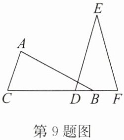 9. 如图,△ABC ≌ △DEF,点 C,D,B,F 在同一条直线上,AC = 3,EF = 5,CF = 7,则 BD 的长为