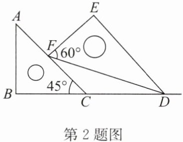 2. 将一副三角板按照如图方式摆放,点 B,C,D 共线,∠CDF = 18°,则∠AFE 的度数为(