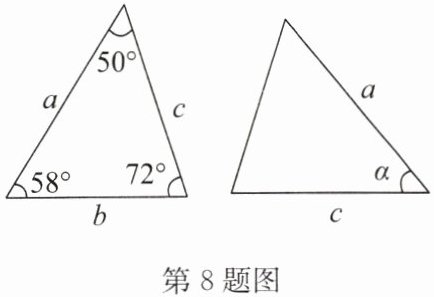 8. 已知图中的两个三角形全等,则∠α 的度数是