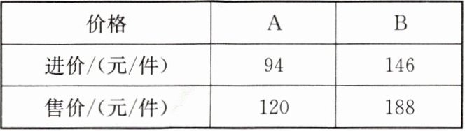 设该超市准备的两种组合全部售出后获得的总利润为w元,则w=(120-94)m+(188-146)(3m-5),即w=152m-210.