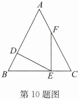10. 如图,在$\triangle ABC$中,$\angle B =  \angle C$,点$D$,$E$,$F分别在边AB$,$BC$,$AC$上,且$BD =  CE$,$\angle DEF =  \angle C$. 请找出图中的全等三角形,并证明你的结论.