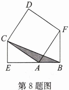 8. 如图,四边形$ACDF$是正方形,$\angle CEA和\angle ABF都是直角且E$,$A$,$B$三点共线,若$AB =  4$,则阴影部分的面积是