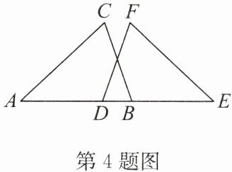 4. (2024·宿迁共同体期末)如图,点 $ A $,$ D $,$ B $,$ E $ 在同一直线上,$ AC =  EF $,$ AD =  BE $,$ BC =  DF $. 求证:$ \angle ABC =  \angle EDF $.