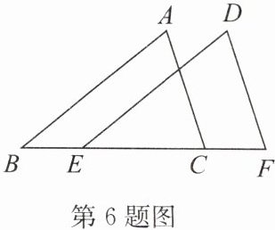 6. 如图,在 $ \triangle ABC $ 和 $ \triangle DEF $ 中,已知 $ AB =  DE $,$ BC =  EF $. 在下列条件中,不能保证 $ \triangle ABC \cong \triangle DEF $ 的是(