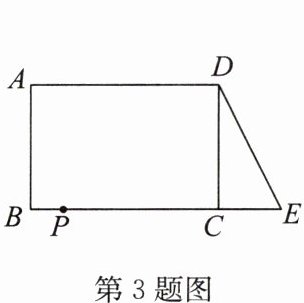 3. 如图,在长方形$ABCD$中,$AB =  4$,$AD =  6$。延长$BC到点E$,使$CE =  2$,连接$DE$,动点$P从点B$出发,以每秒2个单位长度的速度沿$BC - CD - DA向终点A$运动。设点$P的运动时间为t$秒,当$t$为